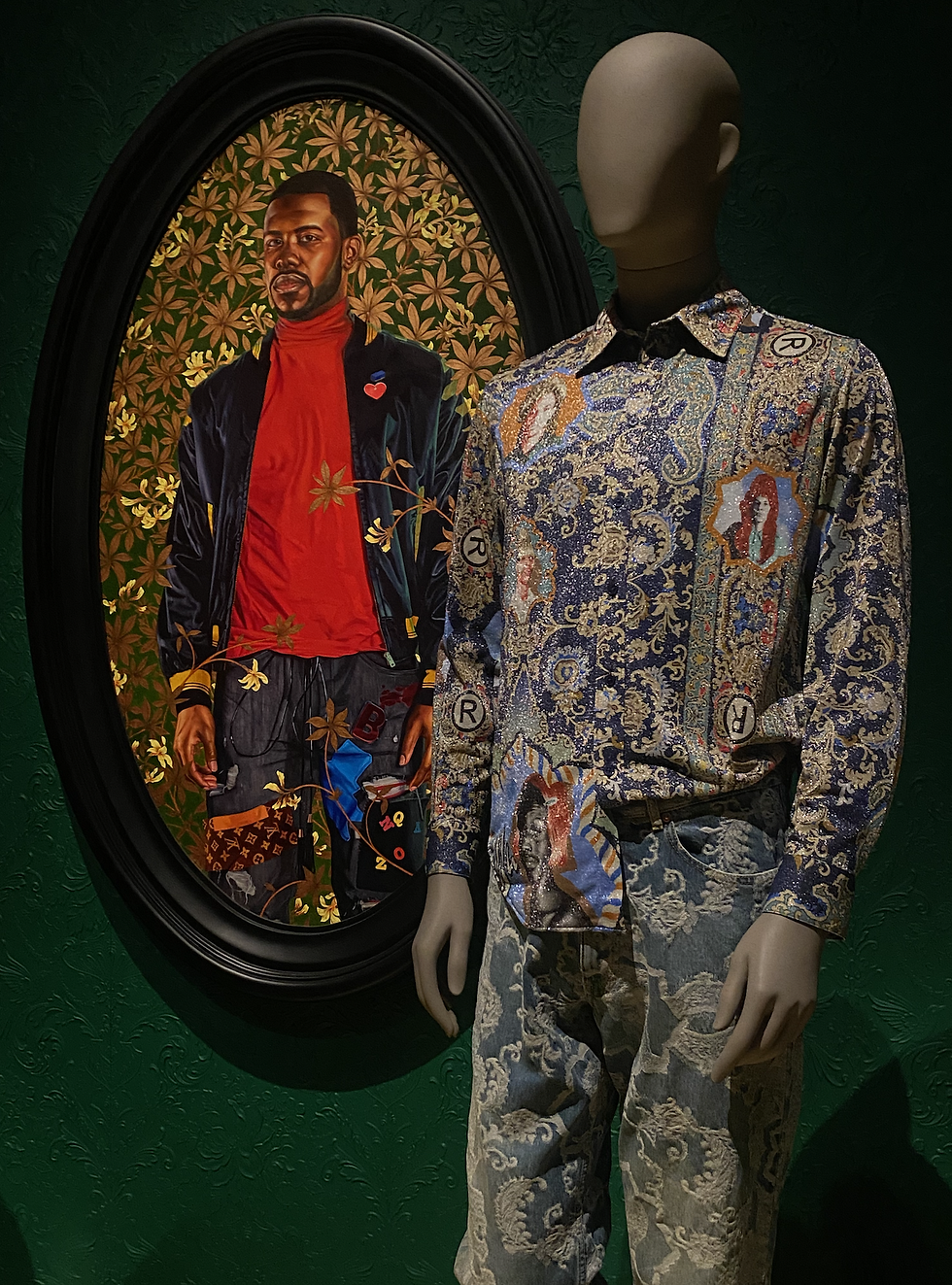 Secondly, the “Overdressed” section was nothing less, we spotted a number of extravagant embroidered suits and capes, such as designer Randi Rahm’s floral embellished ensemble with a shocking pink lining. Worn by Billy Porter in the 2019 Golden Globes. From the highlights, Alessandro Michele for Gucci Pre-Fall 2019 Indigo velvet ensemble worn by Harry Styles, courtesy of Gucci’s Historical Archive. Next to it, Oswald Boateng’s 1996s wool and polyester ensemble.